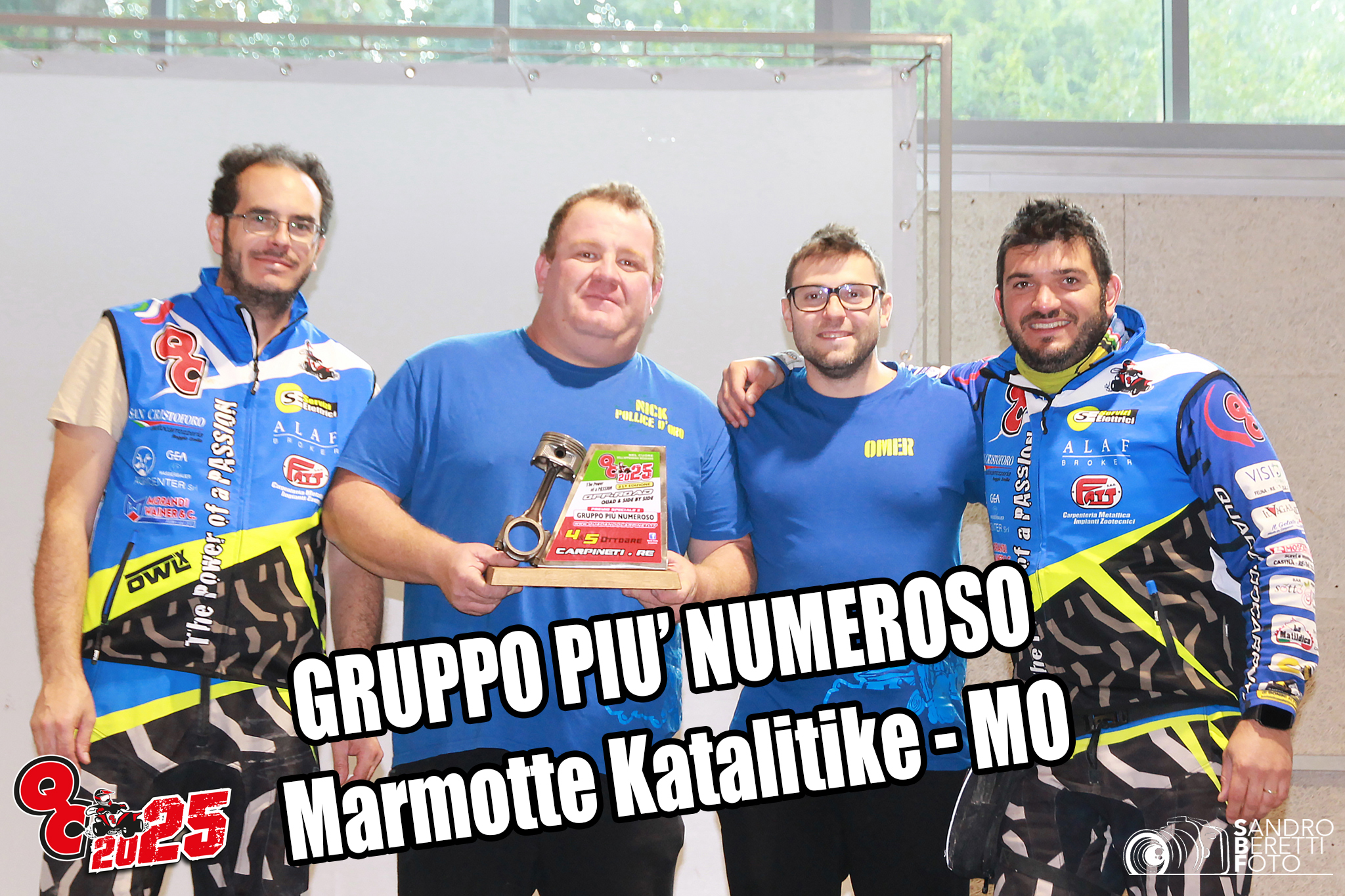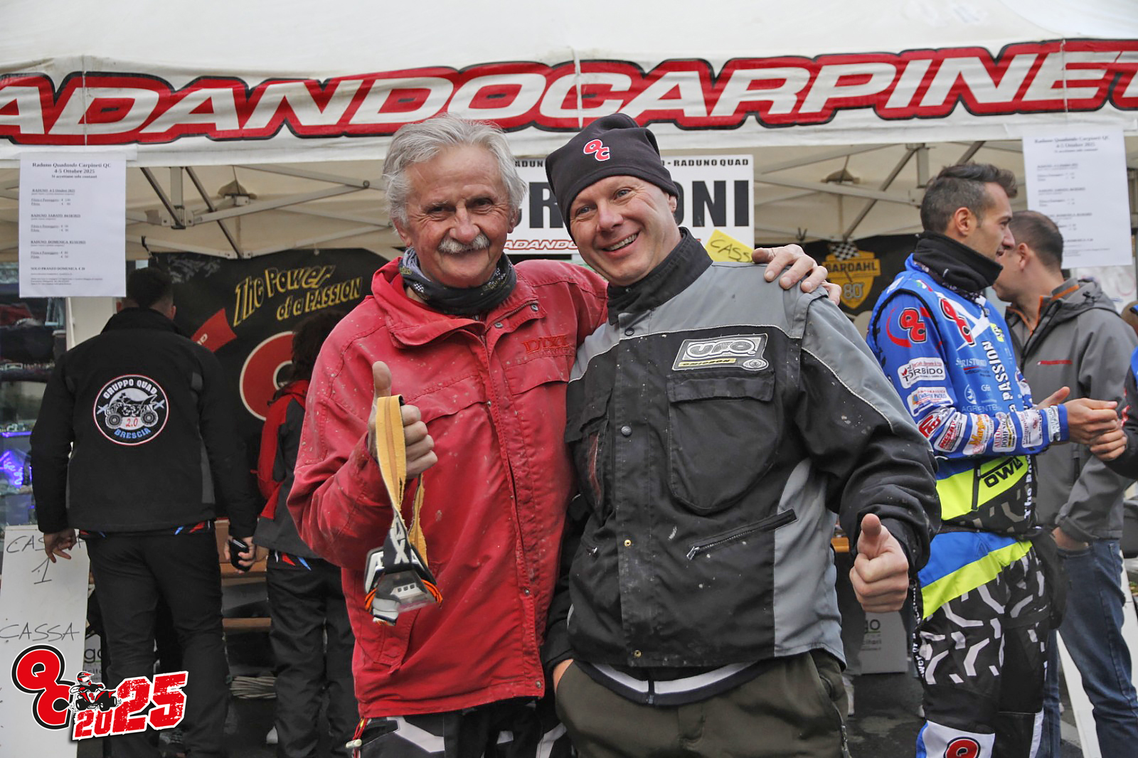 Grazie a Claudio Comensoli di COMENSOLI-OLIVARI Auto-Moto-Quad (BS), ABMLAB Agenzia Fotografica Sportiva; Pisly, Giulia Toni e Fabrizio Misero per le belle foto sul percorso; a tutti i volontari della CRI Carpineti e CRI Casina per lo splendido lavoro svolto; a Tana del Capitano (CRI Casina) per il gustoso pranzo finale; allo Staff dell’Agriturismo “La Collina dei Cavalli di Vedriano di Canossa per il ristoro di sabato e allo Staff del Forno Dallari di Valestra per il goloso ristoro a metà percorso della domenica con anche le punte di Parmigiano Reggiano di Montagna Super Gold della Latteria San Pietro di Valestra; a tutti i nostri fornitori; al responsabile sicurezza e antincendio e ns Pres. Simone Guidetti (Simmi); al nostro Vice “Blito” per gli originali sette premi “home made” QC2025 e il coordinamento personale sui percorsi; a tutti quelli che hanno promosso il nostro evento sul web e social; ai contadini che ci hanno aiutato nella sistemazione carraie. Grazie per la fattiva collaborazione e dialogo a: UISP RE, Comune di Carpineti in toto, ed in particolare nella persona del Sindaco Giuseppe Ruggi e di Simone Merzi. Grazie agli Enti preposti: Unione Montana dei Comuni dell’Appennino Reggiano, Ente del Bacino ex Genio Civile, Corpo Forestale dello Stato, Polizia Municipale. Grazie anche a tutti quelli che ci siamo dimenticati… (che saranno tanti).